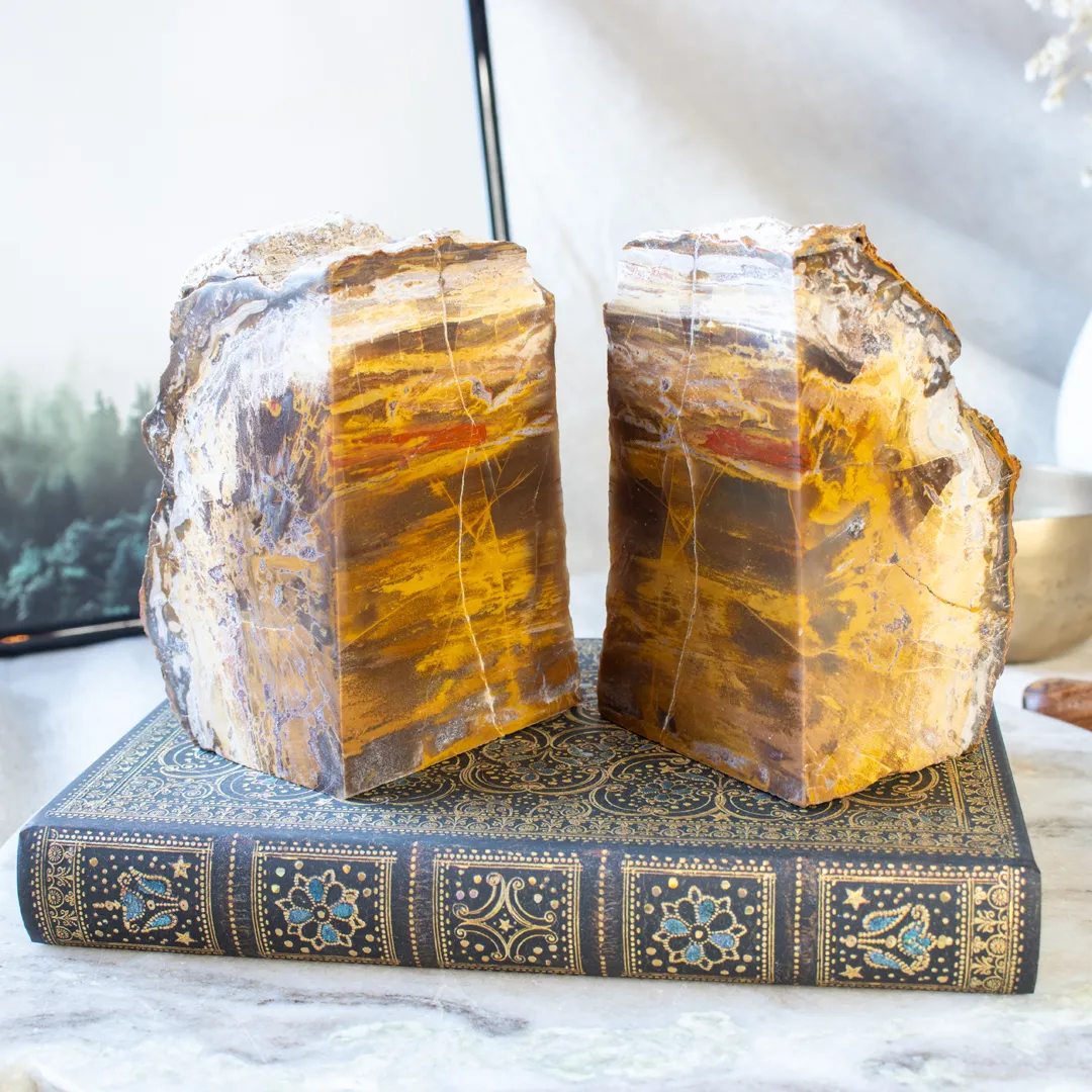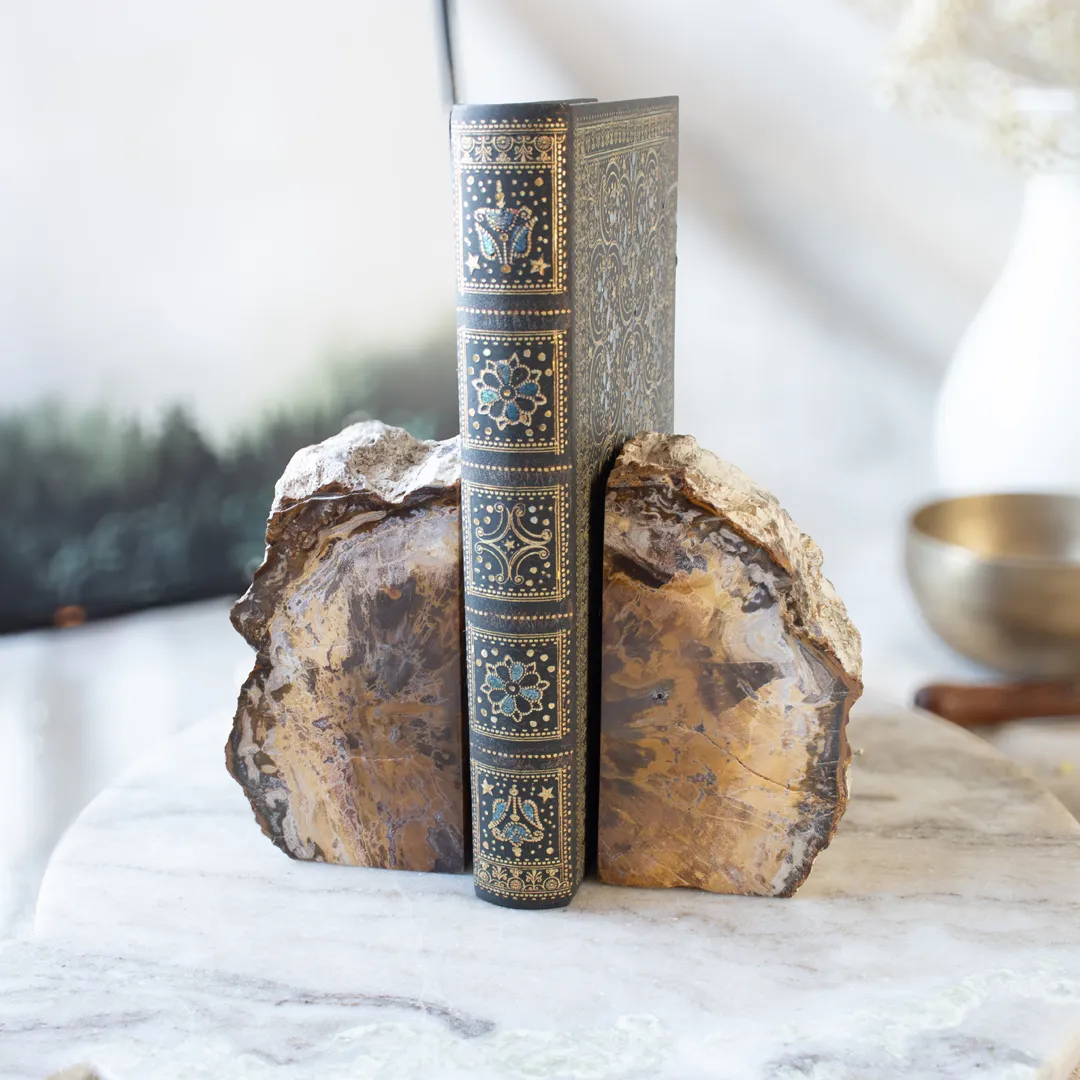 Dessa bokstöd av förstenat trä för in uråldrig natur i ditt hem!