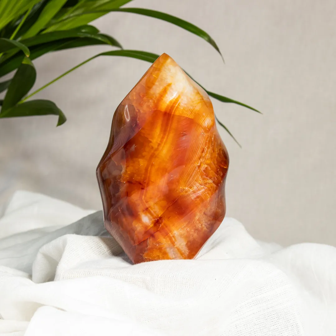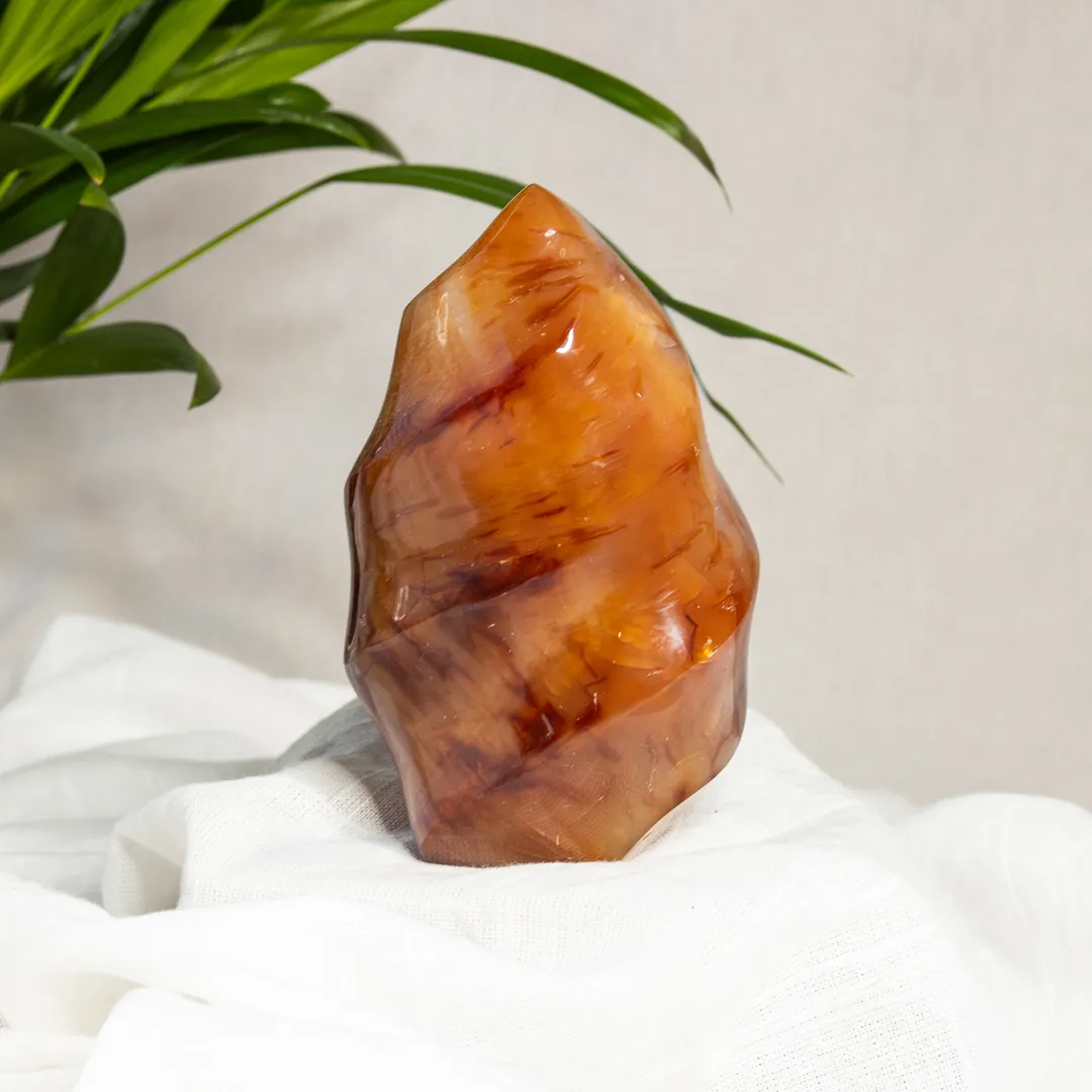 Karneol är en varm och levande sten som förknippas med kreativitet, motivation och mod. Den hjälper dig att landa i nuet, väcka din livskraft och ta steg framåt med självförtroende.