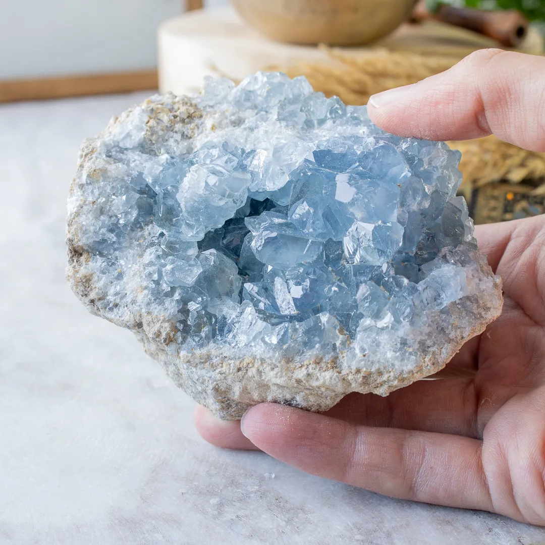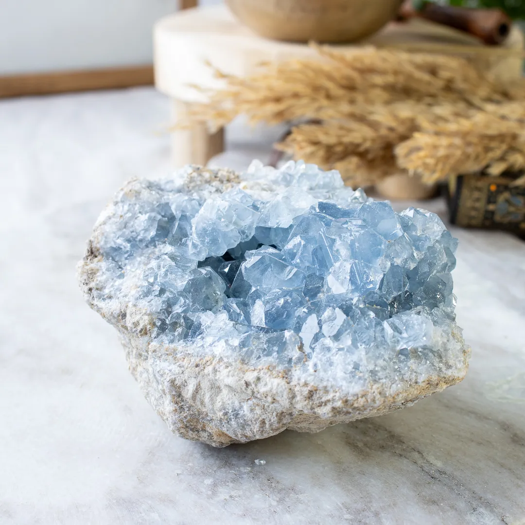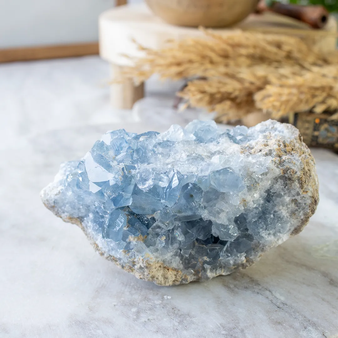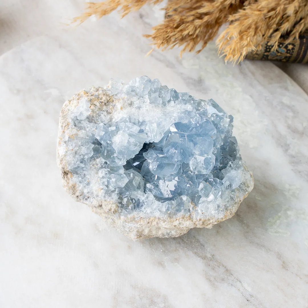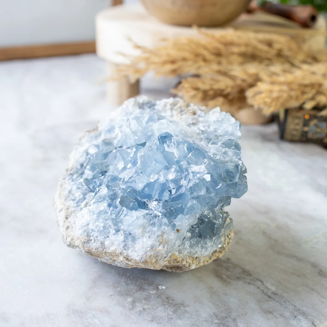 Celestin är en kristall med hög, klar energi som skapar en djup känsla av frid, trygghet och omfamning. Den hjälper dig att återknyta till livets källa och till själsliga delar av dig själv – och stödjer dig i att landa fullt ut i den du är, här på jorden. Resultatet är en känsla av helhet och att vara hemma i dig själv.