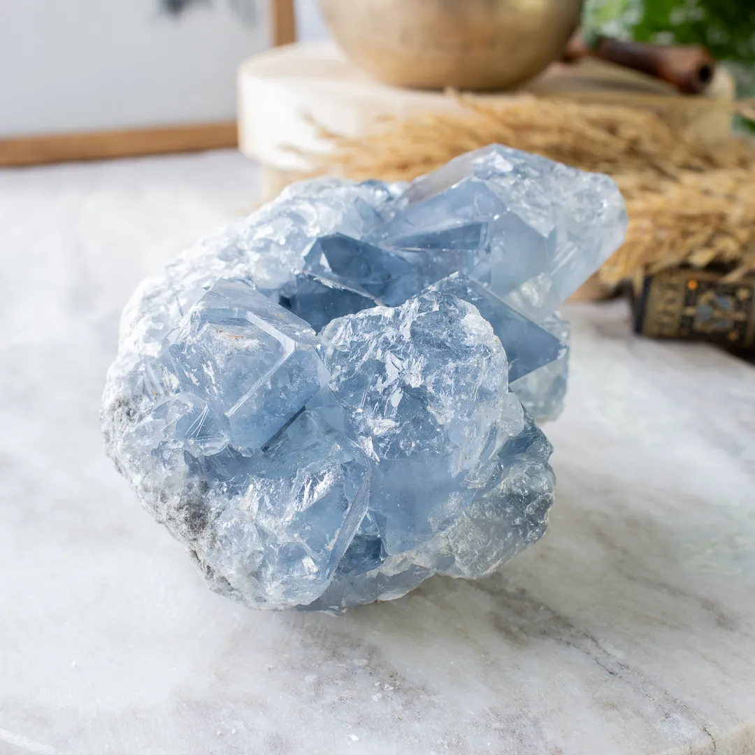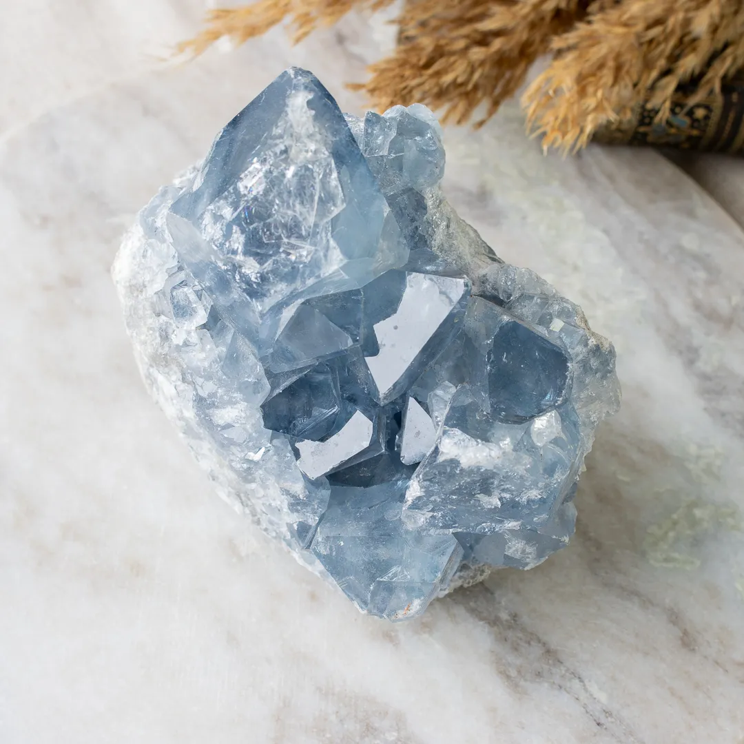 Celestin är en kristall med hög, klar energi som skapar en djup känsla av frid, trygghet och omfamning. Den hjälper dig att återknyta till livets källa och till själsliga delar av dig själv – och stödjer dig i att landa fullt ut i den du är, här på jorden. Resultatet är en känsla av helhet och att vara hemma i dig själv.
