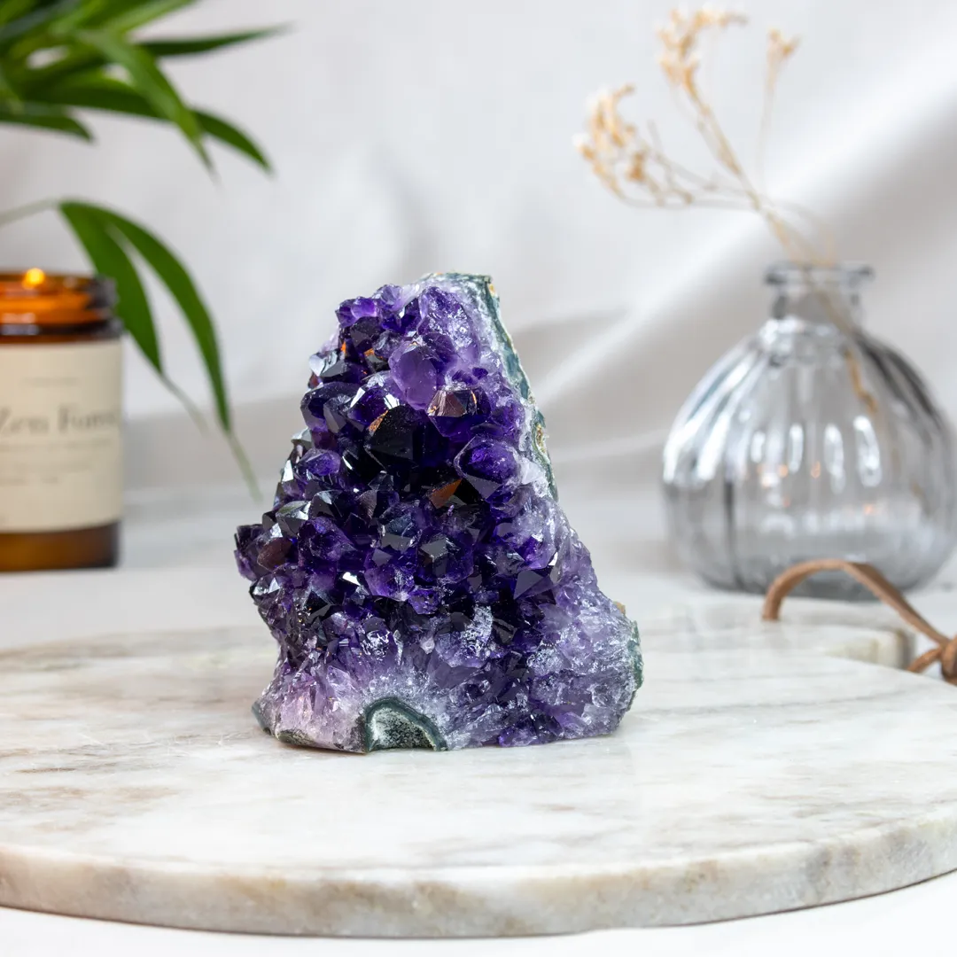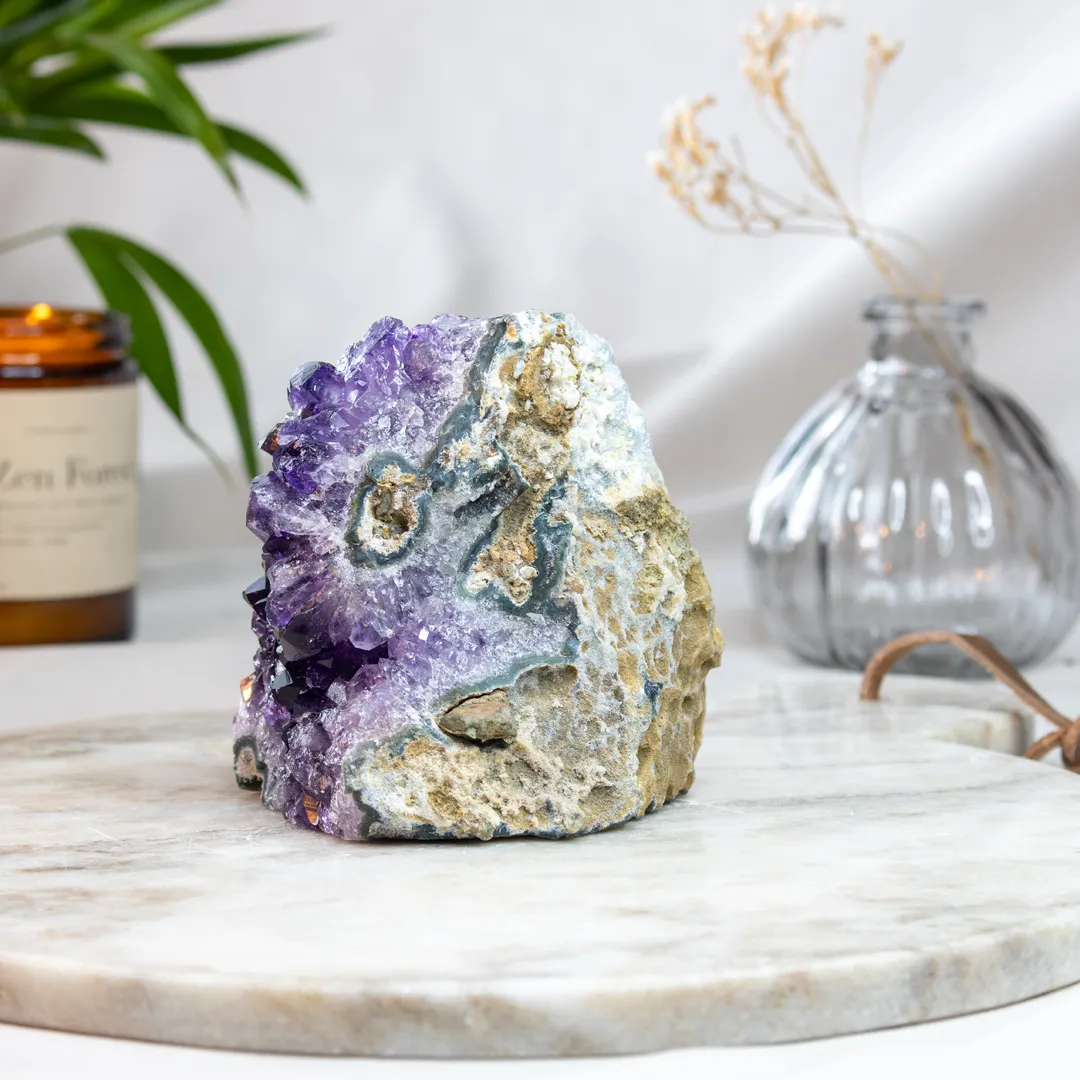 Ametist är stenen för intuition och inre tillväxt. Den symboliserar transformation, skydd, harmoni och rening. Det är en vacker sten som assisterar dig i att koppla samman med din egen visdom och själ. Ametist hjälper dig att komma ihåg vem du är djupt inuti. Stenen används även som stöd vid ångest, oro, sorg eller ilska och ger dig mer klarhet och förståelse för dina val och känslor.